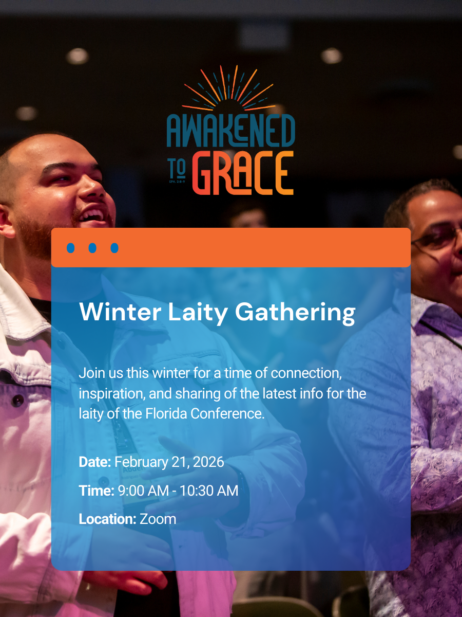 Join us for a time of connection and inspiration for the laity of the Florida Conference. This gathering is a “touch-point” for the laity with a goal to create a space for information sharing and collaboration, particularly at the District level. All Lay Leaders in the FLUMC are invited to attend. Registration is required.
